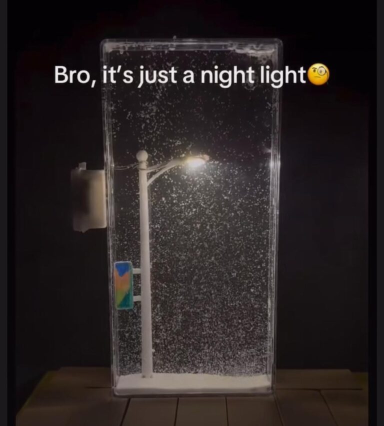 ✅طراحی خیرهکننده: ظاهر این چراغ خواب به شکل یک جعبه شیشهای است که داخل آن منظرهای برفی به تصویر کشیده شده است.