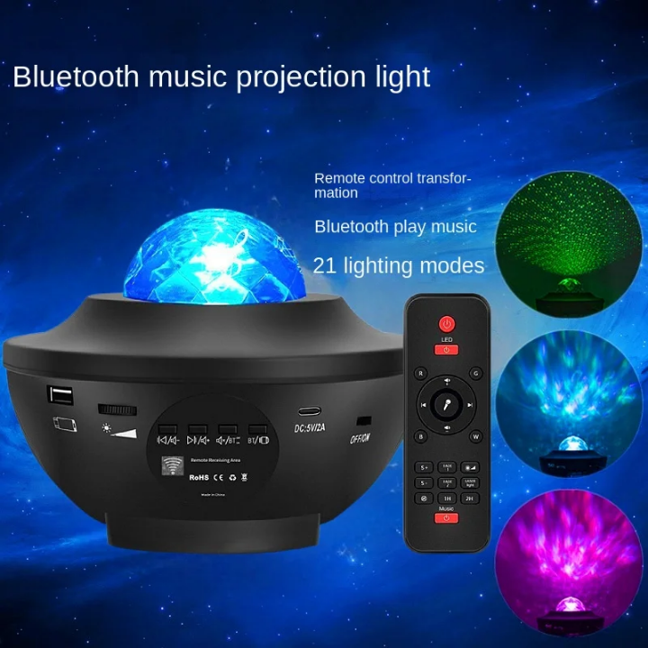 چراغ خواب کهکشان بلوتوث اسپیکر دار کنترلی10 ترکیب رنگ و ۳ حالت روشنایی فوق العاده