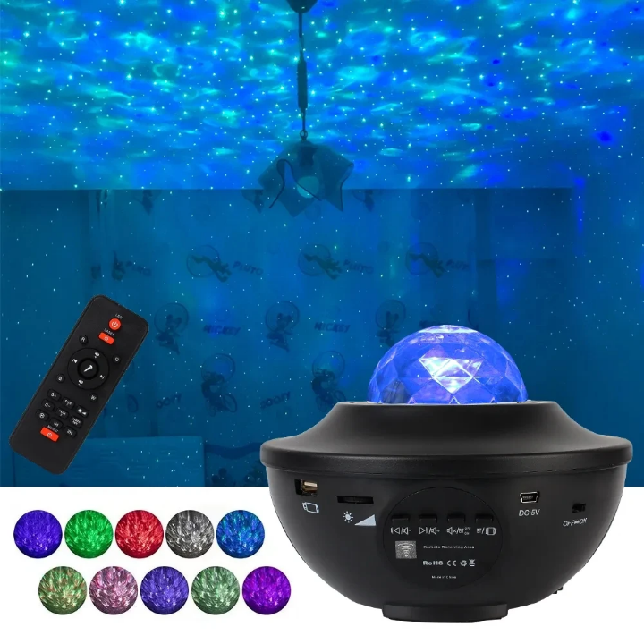 پروژکتور کهکشانی با 4 چراغ رنگی اصلی که شامل: (آبی/سفید/سبز/قرمز) است، 10 ترکیب چند رنگ را تشکیل می دهد ، با حالت “موج اقیانوس” ، نور و ستارگان را در کنار یکدیگر ترکیب می کند.
