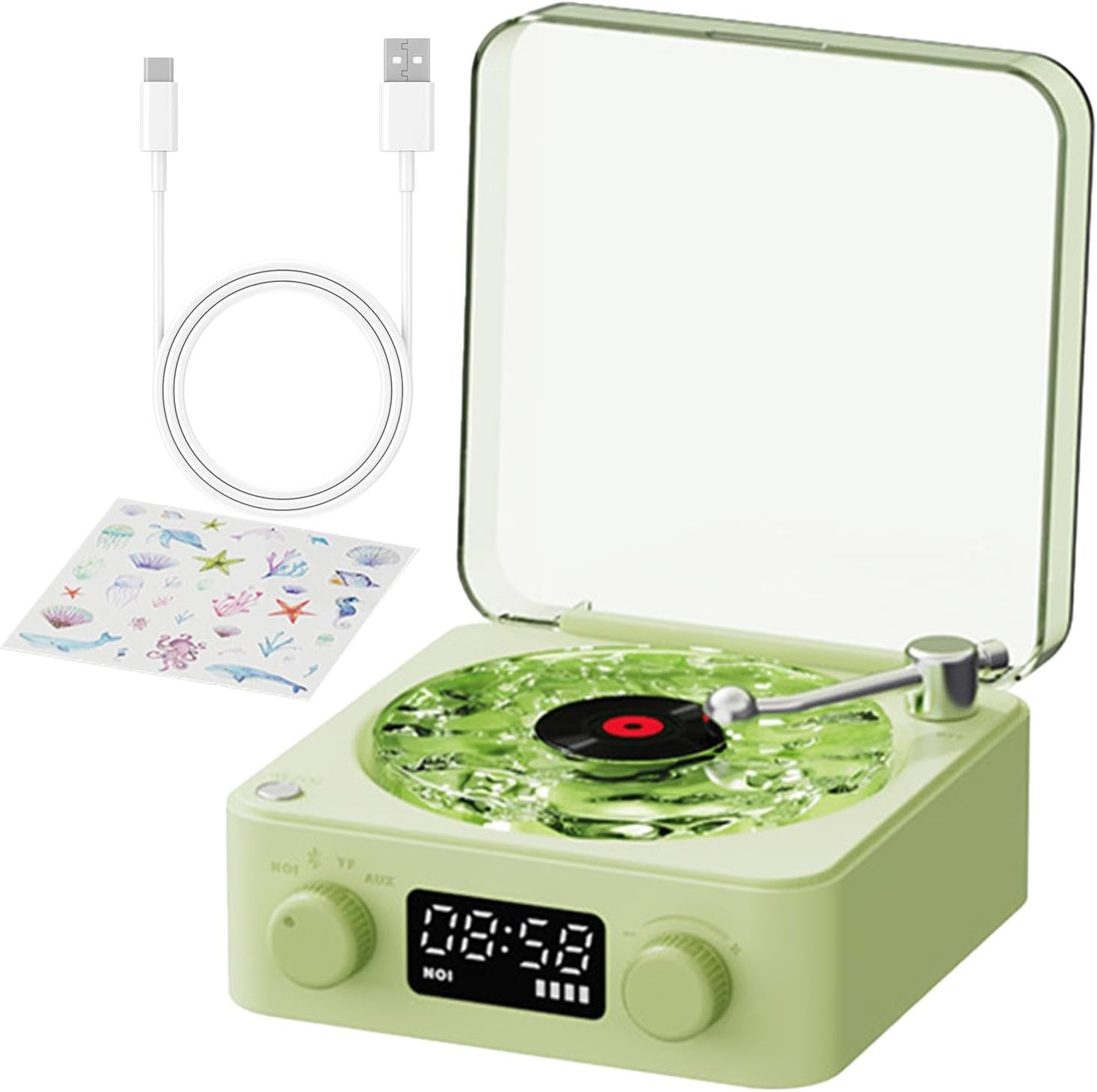 ✅اقلام همراه: اسپیکر گرامافونی رقص نور دار کابل شارژ دفترچه راهنما