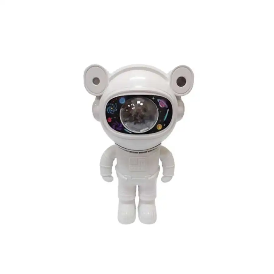 چراغ خواب کهکشانی طرح فضانورد یک چراغ خواب یا نورپردازی با قابلیت پخش افکت تصویر زنده کهکشانی در رنگ های مختلف به همراه لیزر ستاره ای بر روی سقف و دیوار اتاق یا هر سطح دیگری است که به همراه افکت لیزر ستاره ای حس یک سفر کهکشانی را قبل از خواب به شما میدهد .این پروژکتور کهکشانی دارای یک اسپیکر بلوتوثی در قسمت پایه زیرین نیز هست که میتواند برای شما هر موسیقی آرامش بخشی را پخش نمایید تا بتوانید با آرامش به خواب بروید برای روشن شدن بلوتوث اسپیکر دکمه کوچک روی پایه را فشار دهید تا روشن بشود . تلفیق همزمان تصویر زنده کهکشانی و لیزر ستاره ای و اسپیکر بلوتوثی جذابیت اتاق خواب و خواب شما را چندین برابر میکند . این محصول دارای ریموت کنترل نیز می باشد که میتواند نور پرژکتور یا لیزر را کم یا زیاد و یا برای روشن ماندن محصول تایمر تعریف کنید که سر ساعت مشخص شده محصول خاموش بشود . این محصول دارای باتری داخلی است و میتوانید بدون نیاز به اتصال دائم به برق از آن در هرجایی که دوست دارید استفاده کنید و لذت ببرید.