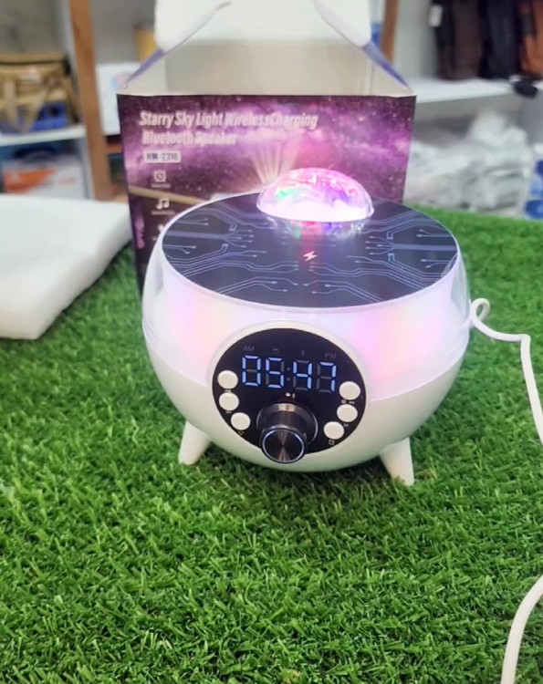 گجت چراغ خواب، اسپیکر و شارژر بیسیم رقص نور دار مدل HM-2310 دارای