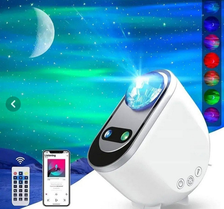 ترکیبی جذاب از شفق آبی، قرمز، سبز، سفید و ستاره سبز و ماه وجود دارد که به آرامی می چرخند و ابر شفق را می توان به طور جداگانه خاموش کرد.