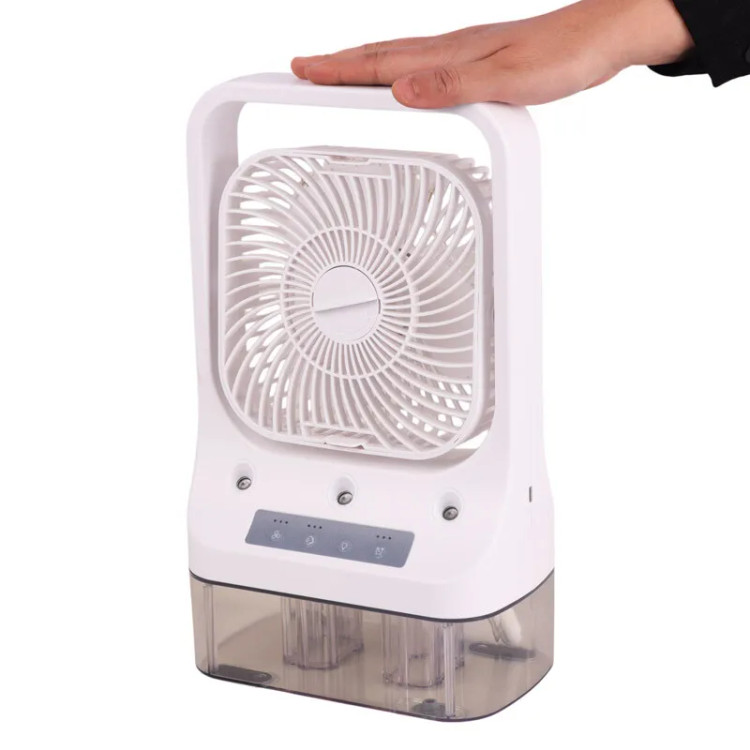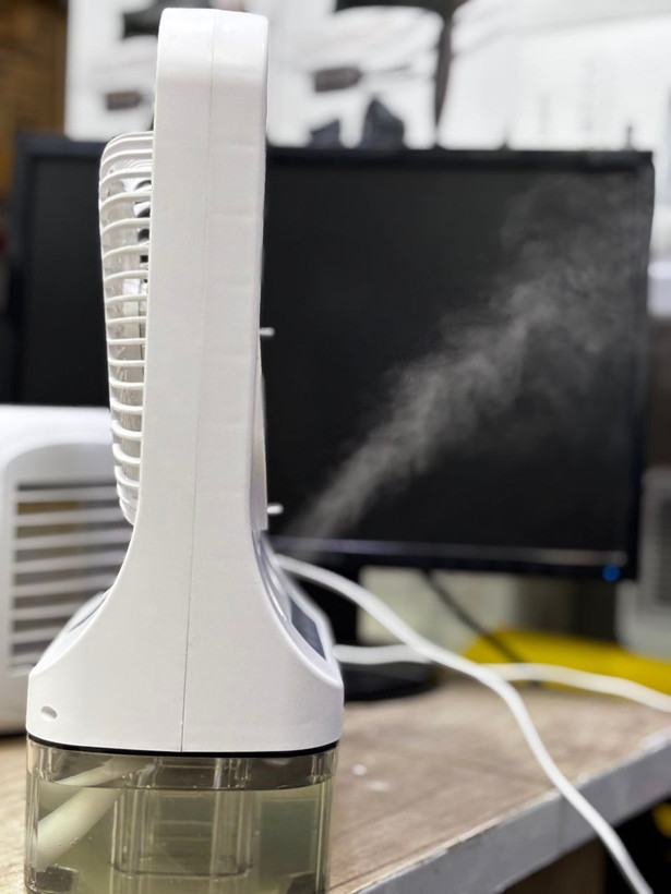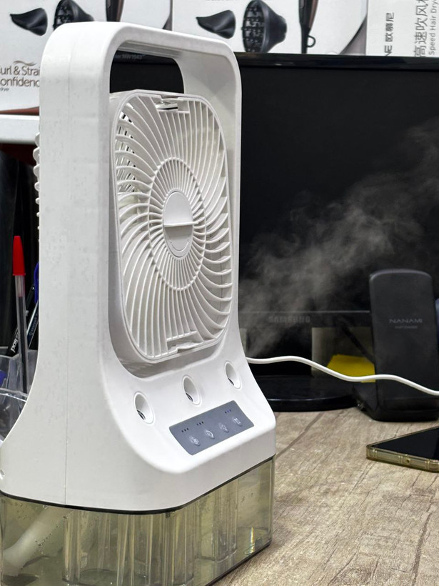 پنکه رومیزی رطوبت ساز و مه پاش دارای مخزن آب با قابلیت مه پاشی از طریق سه محفظه تعبیه شده در جلوی پنکه را دارد و علاوه بر اینکه هوای پاکی برای شما به ارمغان می آورد برای تنفس محیط شما را خنک تر هم می کند ، این پنکه ها زیبایی خاصی و شیکی دارد و دارای نور نیز می باشد که می توانید به عنوان چراغ خواب هم ازش استفاده کنید