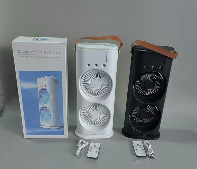 در سال 1404، محصول جدیدی با نام پنکه مه پاش رومیزی دو فنه وارد بازار شد. این محصول را با نام های پنکه مه پاش دو طبقه و پنکه مه پاش دوقلو نیز می شناسند که قابلیت شارژ دارد. در واقع همین محصولی که که در این صفحه قصد معرفی آن را داریم یک پنکه رومیزی بسیار قدرتمند است که از 2 فن 3 پر با قطر 10 سانتی متر ساخته شده است. اگر از بخش بالایی بخواهیم شروع کنیم باید به مخزن آب آن اشاره کنیم که 280 میلی لیتر ظرفیت دارد. بر روی بدنه این فن یک خط تعبیه شده تا میزان آب درون مخزن مشخص شود. درون این مخزن می توان ترکیبی از آب و یخ یا آب ریخت تا از 3 نازل تعبیه شده روی پنکه به صورت اسپری خارج شود و با ترکیب باد، خنکی بیشتری را به ارمغان بیاورد.