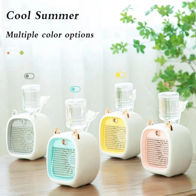 بطری اسپری فن آب – این فن مه پاش تکه های یخ و آب را در داخل مخزن نگه می دارد، دمای خروجی هوا را کاهش می دهد، رطوبت نسبی را افزایش می دهد و در عین حال خنک کننده را بهبود می بخشد و نسیم مرطوب و خنکی را برای شما فراهم می کند که پوست شما را خشک نمی کند.